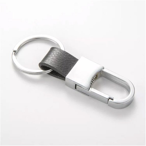 • Stylish Promotional Metal Key Chain with leather and fabric strap.