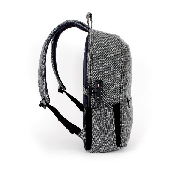 •  Slash-resistant construction and lockable zippers enhance security.